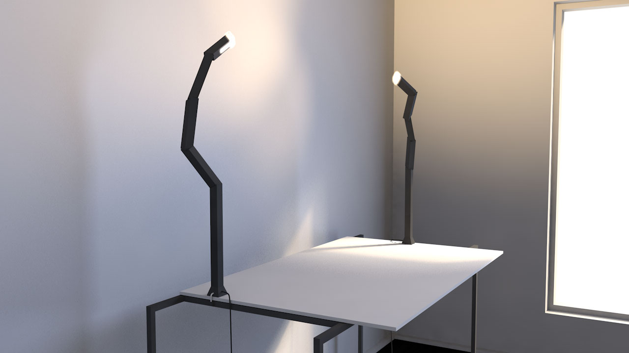 The Indu Lamp is an articulated object inspired by kinetic movement. Its flexible joint system allows the light to be directed in any desired direction. The square aluminum tubes have inclined ends at an angle of 25° and can be securely locked in place by brass guides and neodymium ring magnets. Thanks to its modularity, the lamp can be easily shortened or extended. Equipped with a dimmable 12-volt LED, it provides pleasant light that can be diffused or focused by moving the plexiglas head forwards or backwards.